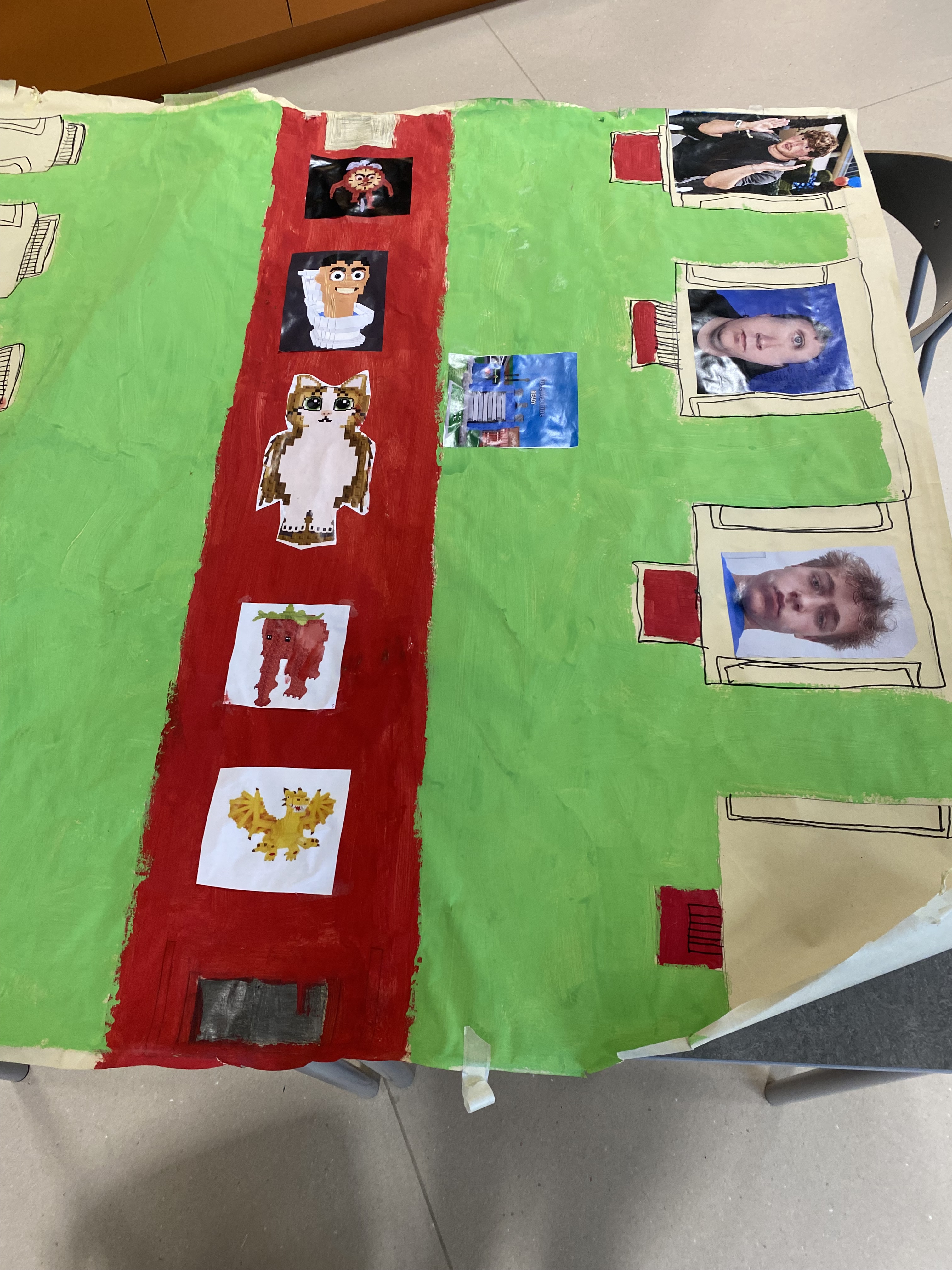 Och kanske är det just där mitt uppdrag börjar: inte i att konkurrera med gapigheten, utan i att våga erbjuda något annat. En paus. En långsam mening. Ett mellanrum där man inte måste reagera direkt. Idag blev det trots allt några minuter i djup koncentration i deras grupparbete med att färdigställa sina stora bild. Och där, mitt i gapigheten, blev det ett läckert och tänkvärt verk.